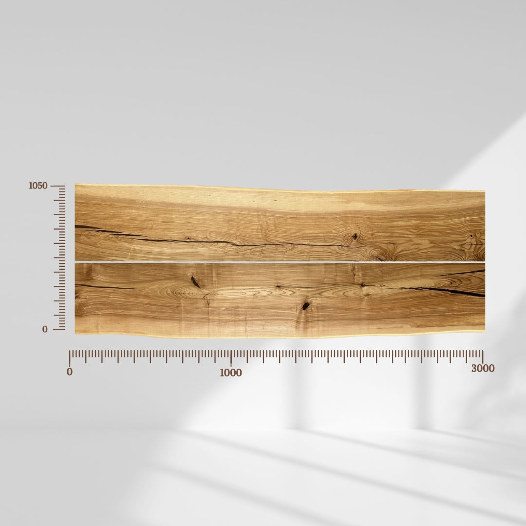 • Insect traces – Feeding tunnels or holes, especially near the edges (sapwood), are professionally repaired with filling material, though they may not always be visible in selection images.