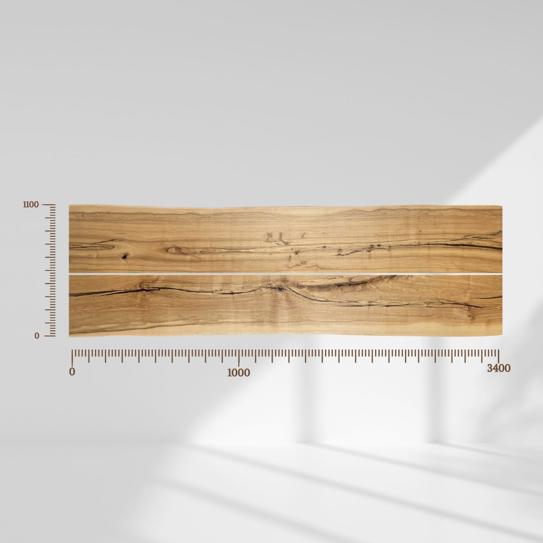 • Insect traces – Feeding tunnels or holes, especially near the edges (sapwood), are professionally repaired with filling material, though they may not always be visible in selection images.