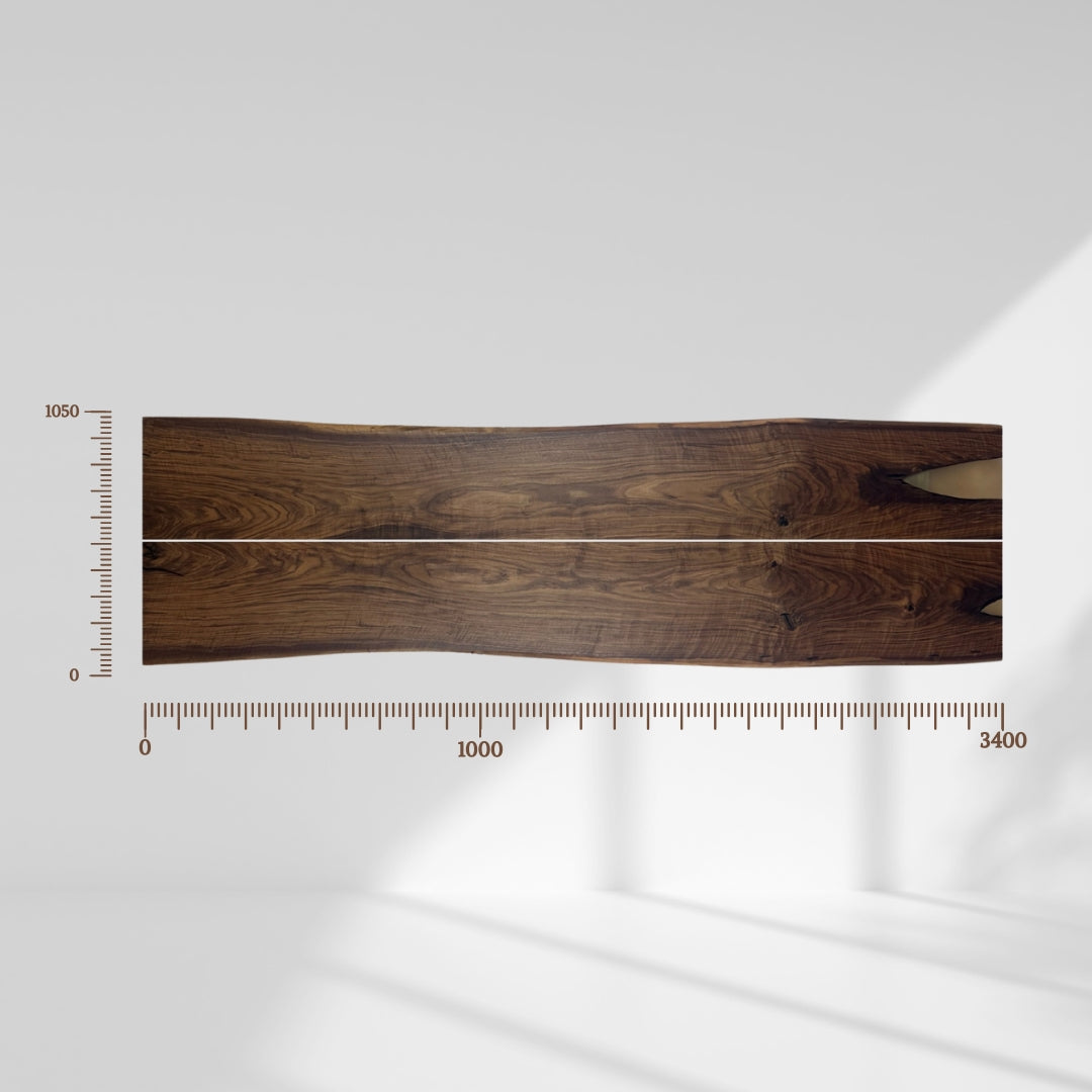 Cracks, knots, and holes are carefully filled with translucent epoxy, preserving the wood’s unique character while ensuring a smooth, easy-to-clean surface.