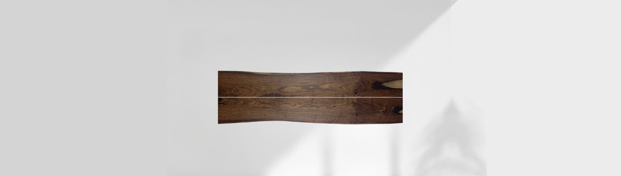Epoxy Resin: We fill holes, cracks and knots with translucent epoxy resin. This way they remain clearly visible and your table can still be easily cleaned, oh and it looks great too!
