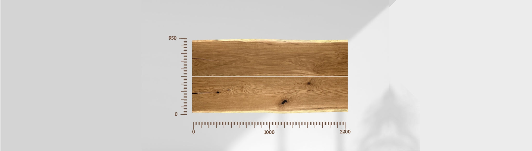 • Insect traces – Feeding tunnels or holes, especially near the edges (sapwood), are professionally repaired with filling material, though they may not always be visible in selection images.