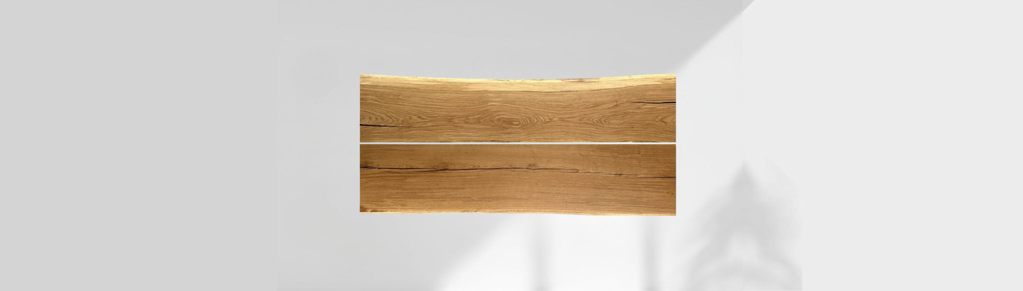 • Insect traces – Feeding tunnels or holes, especially near the edges (sapwood), are professionally repaired with filling material, though they may not always be visible in selection images.