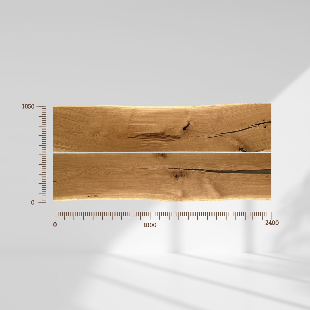 • Insect traces – Feeding tunnels or holes, especially near the edges (sapwood), are professionally repaired with filling material, though they may not always be visible in selection images.