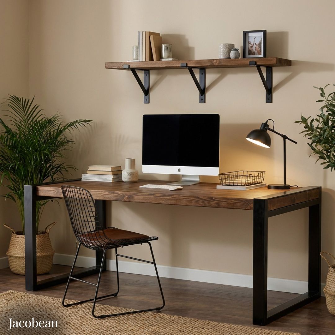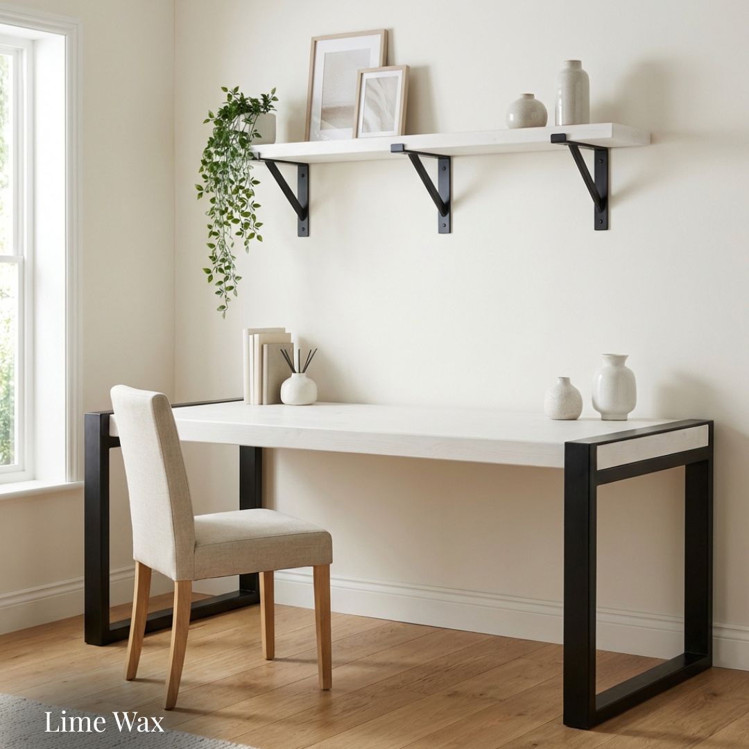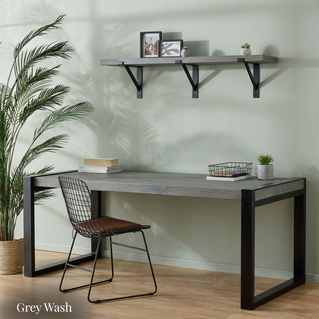 The Urban Loft Industrial Office Desk blends rugged farmhouse character with modern industrial strength. Its thick, reclaimed scaffold-board desktop features a beautifully textured grain, expertly finished by hand with two coats of Fiddes Supreme Wax to enhance its natural beauty and depth.generous coats of Fiddes Supreme Wax.