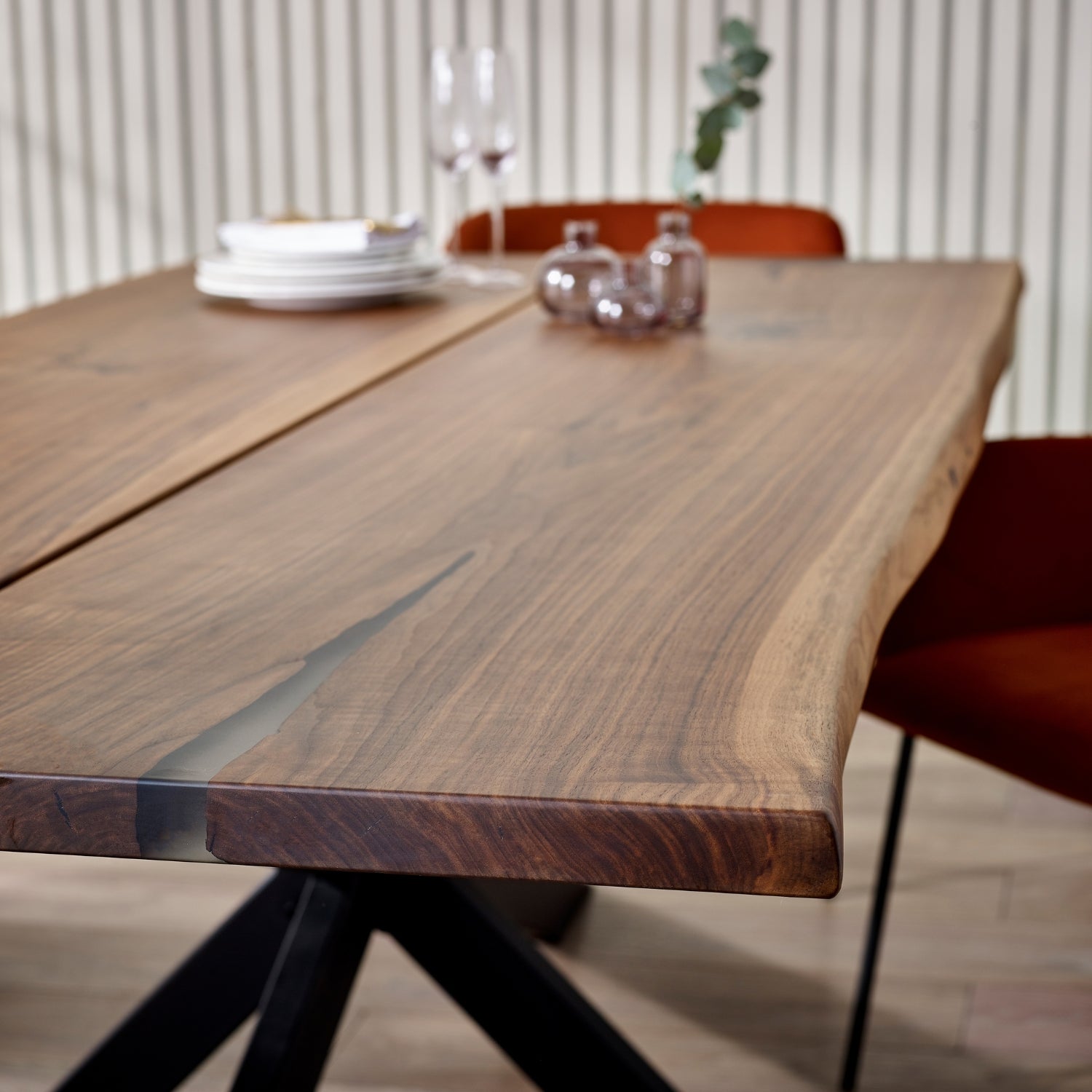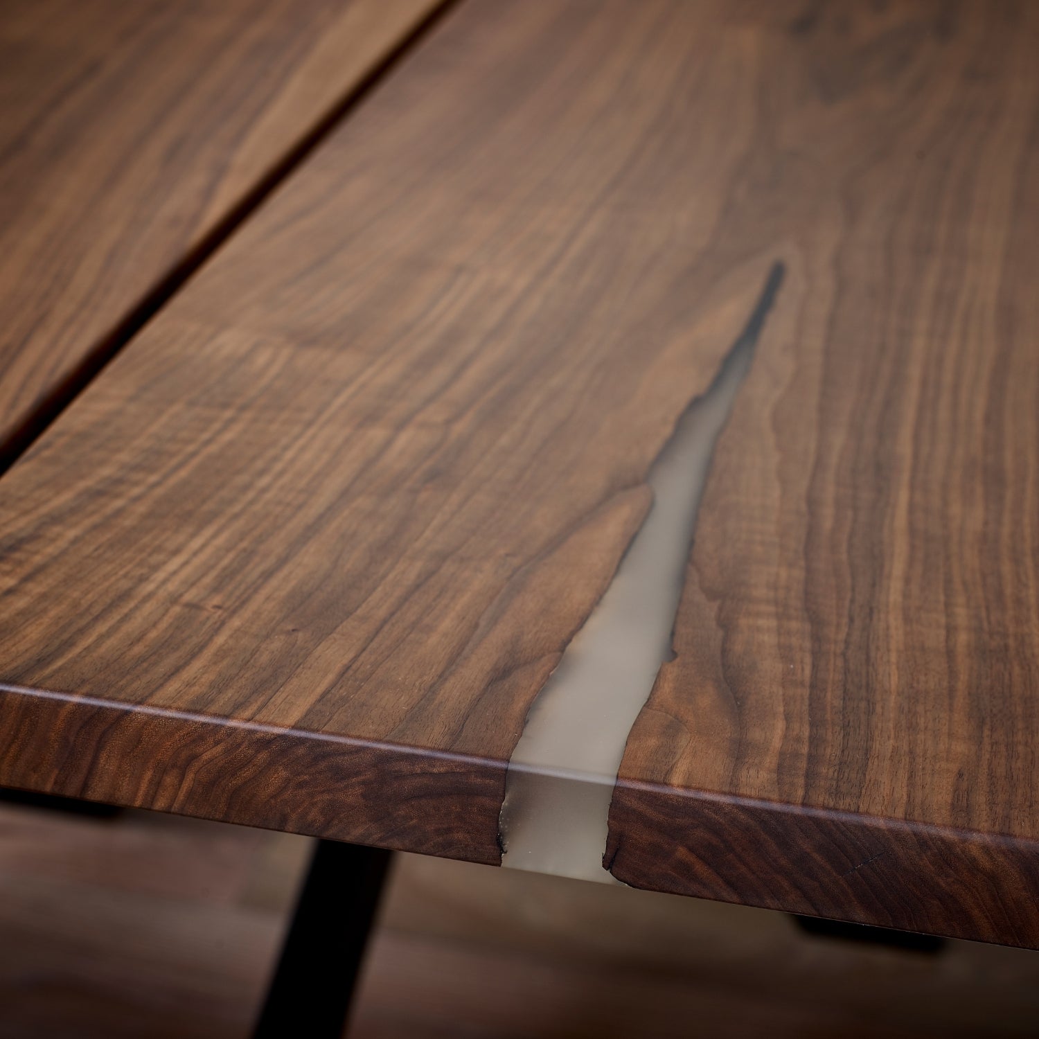 Epoxy Resin: We fill holes, cracks and knots with translucent epoxy resin. This way they remain clearly visible and your table can still be easily cleaned, oh and it looks great too!
