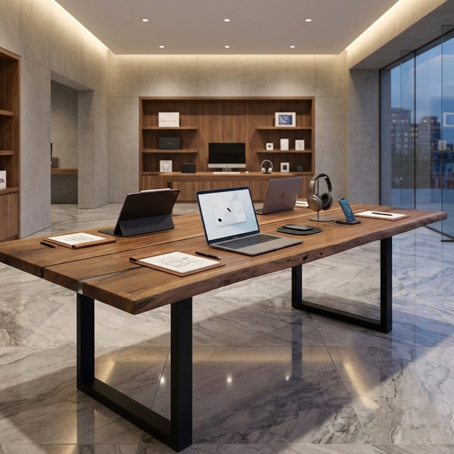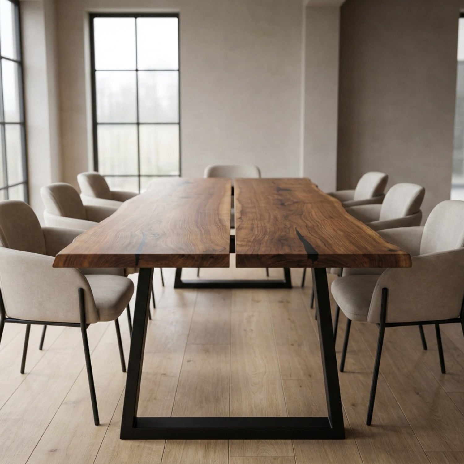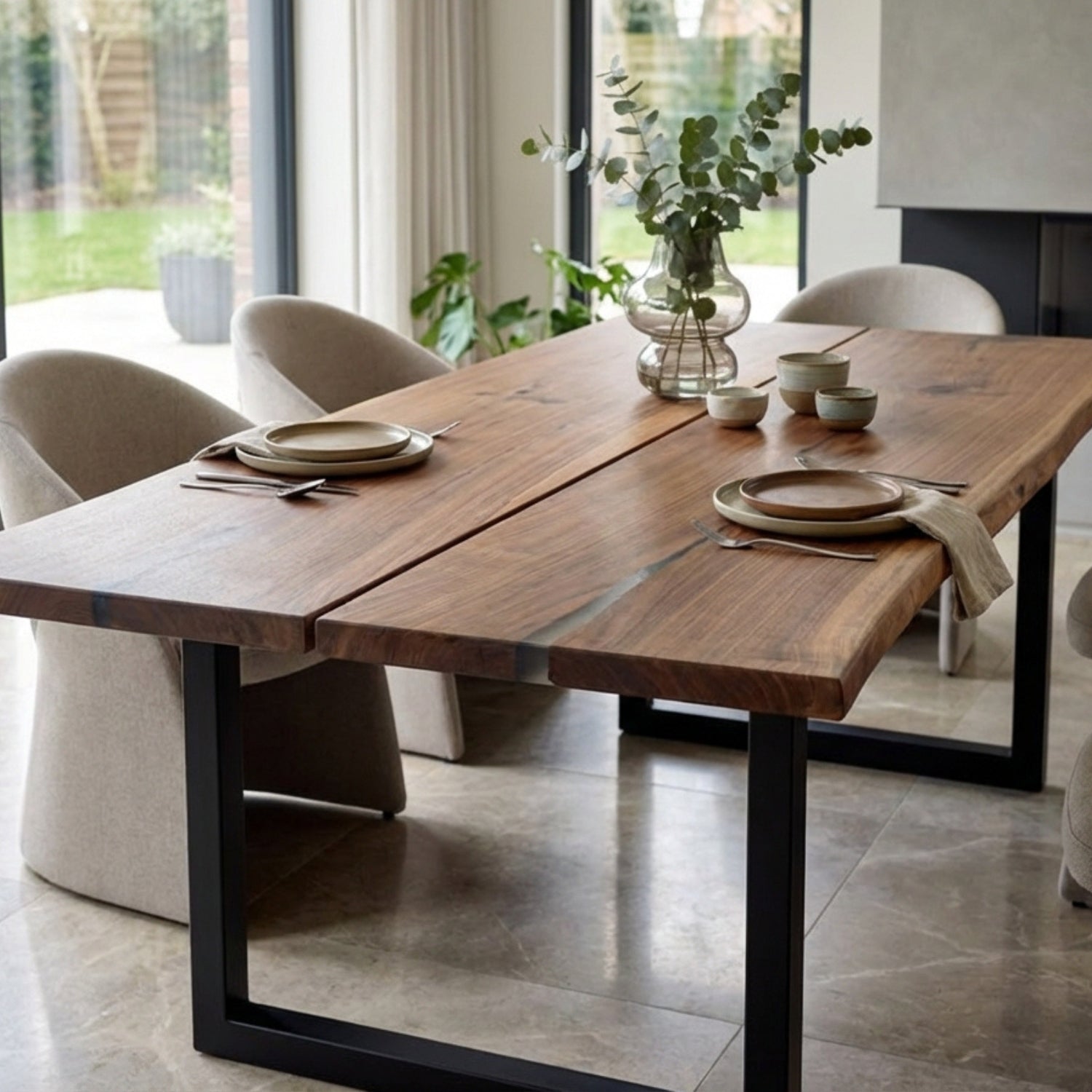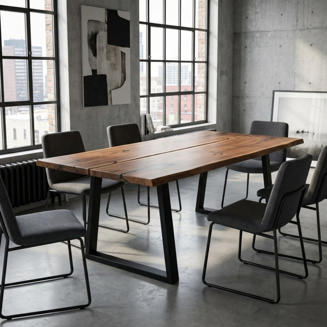 Cut from 2 bookmatched slabs of solid American Walnut and handcrafted in our UK workshop, this Signature table combines natural character with contemporary design. Every grain pattern, knot, and edge detail is one of a kind. Once this slab is sold, it cannot be recreated.