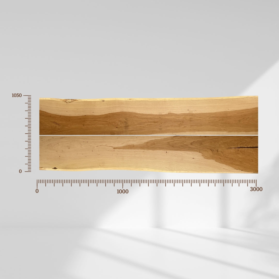 • Insect traces – Feeding tunnels or holes, especially near the edges (sapwood), are professionally repaired with filling material, though they may not always be visible in selection images.