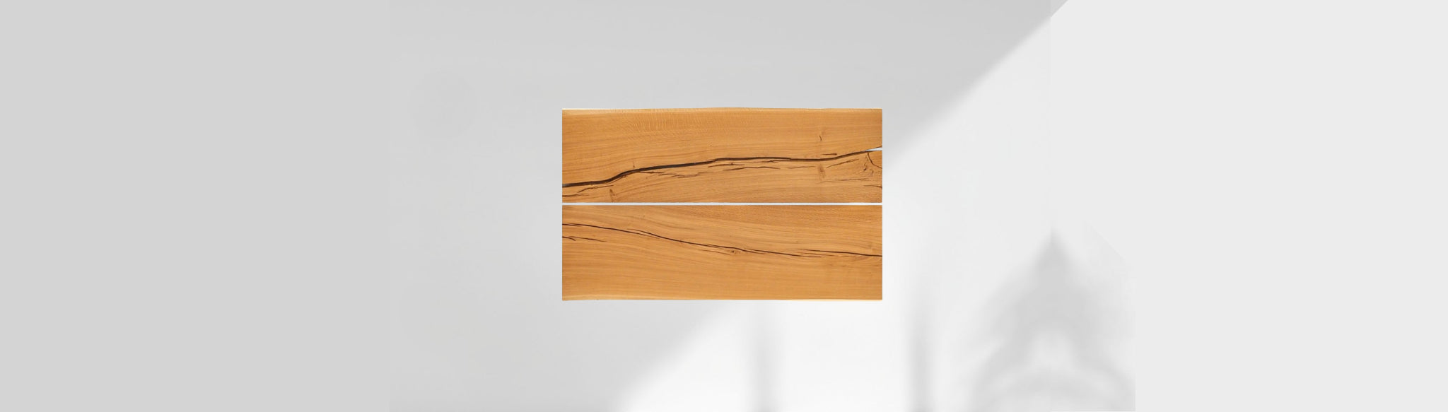 • Insect traces – Feeding tunnels or holes, especially near the edges (sapwood), are professionally repaired with filling material, though they may not always be visible in selection images.