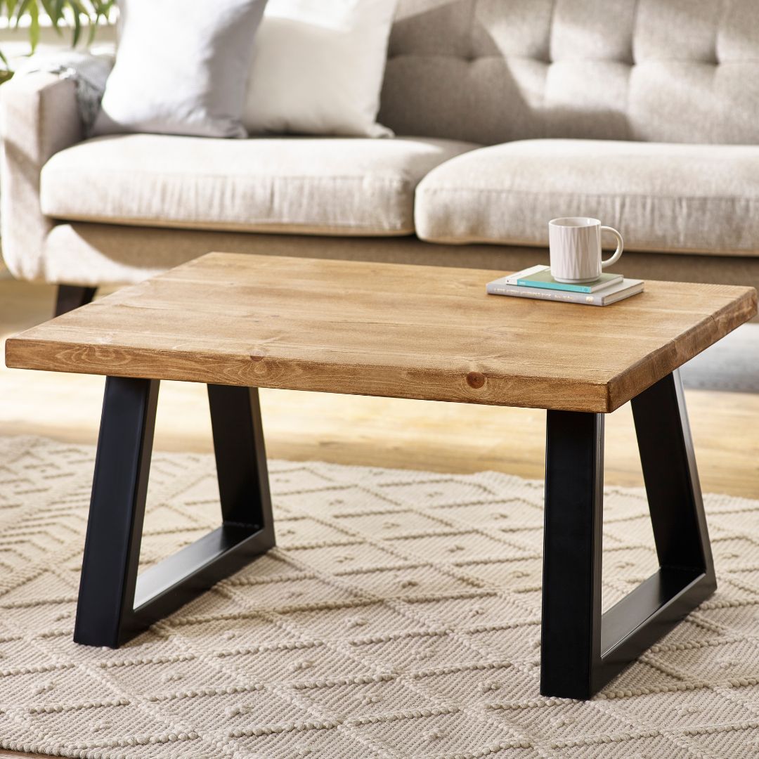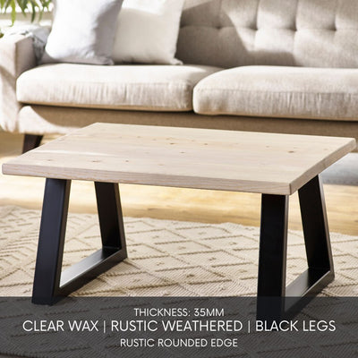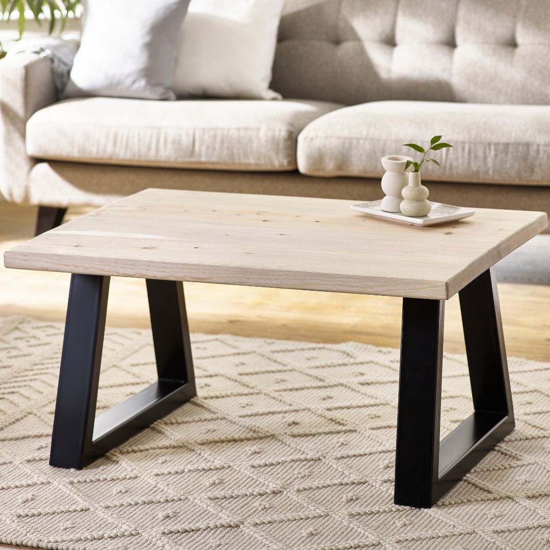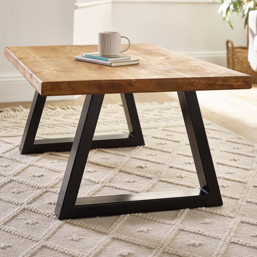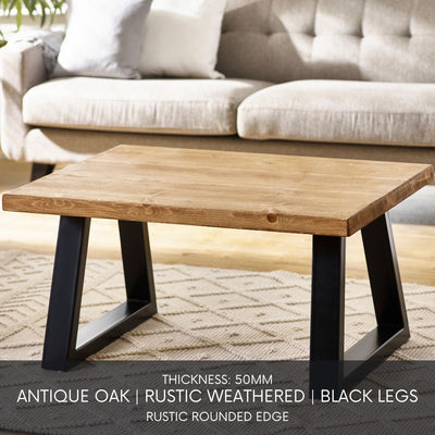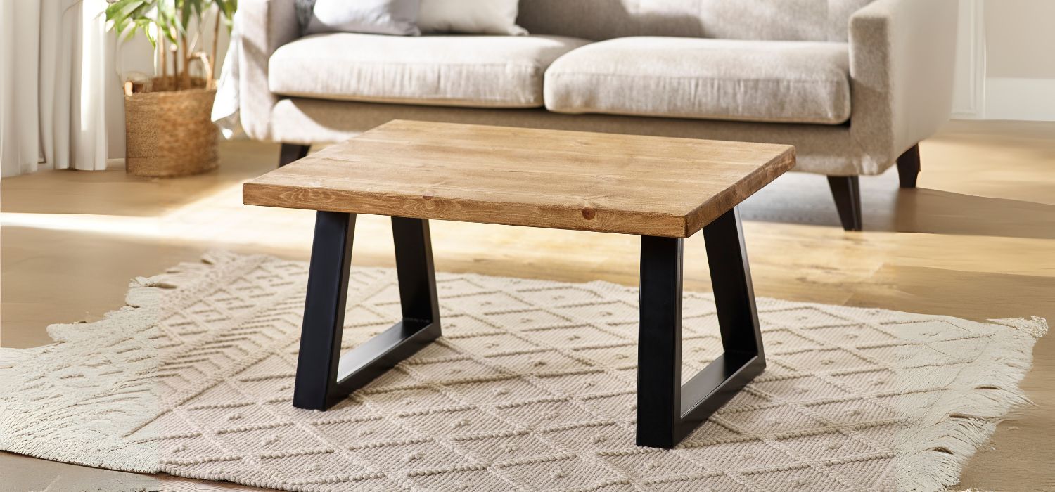 The Glenridding Coffee Table showcases a solid wood top with naturally weathered grain and unique character markings. Its sturdy, square-profile legs add a modern touch, blending rustic charm with contemporary design. A striking yet functional centerpiece for any living space.